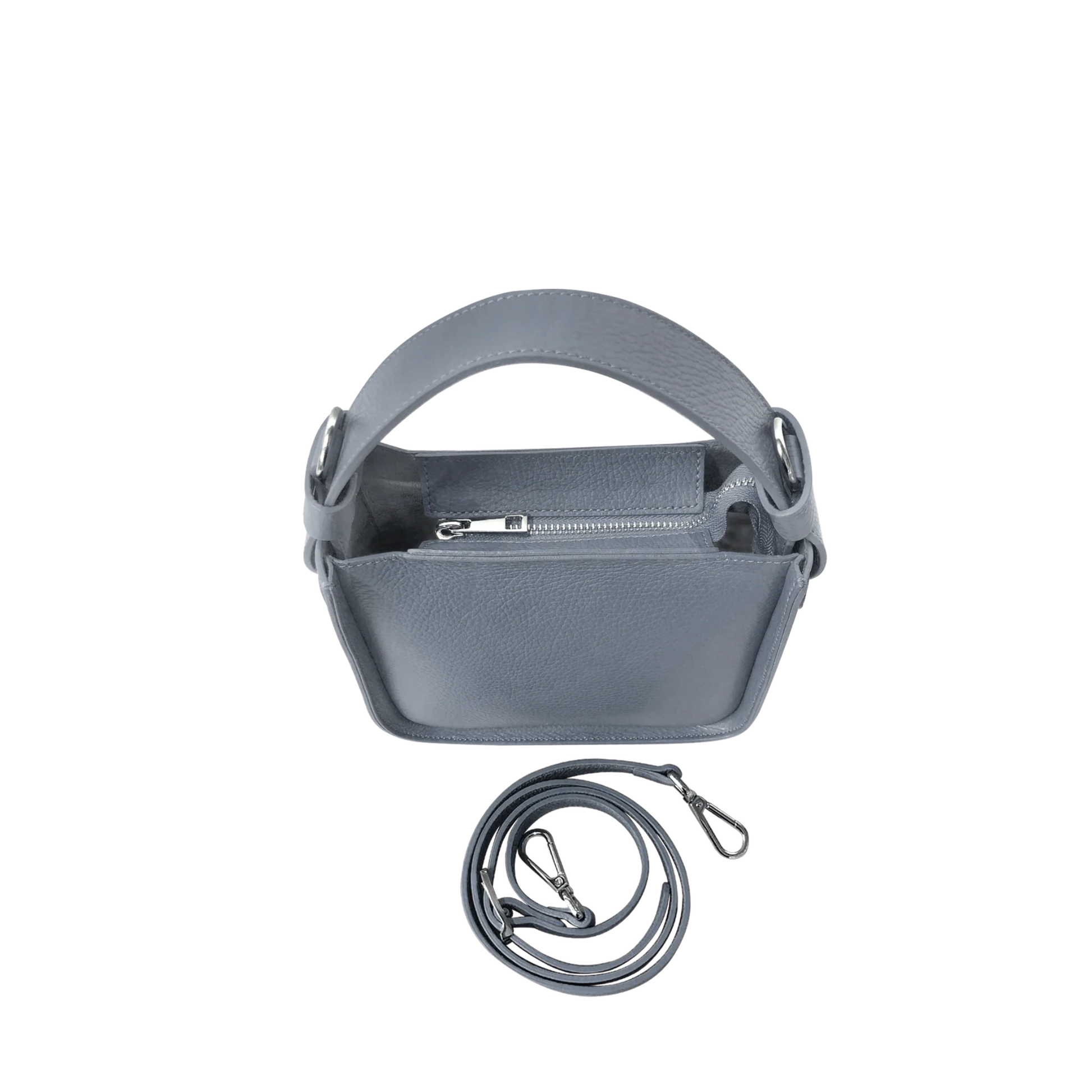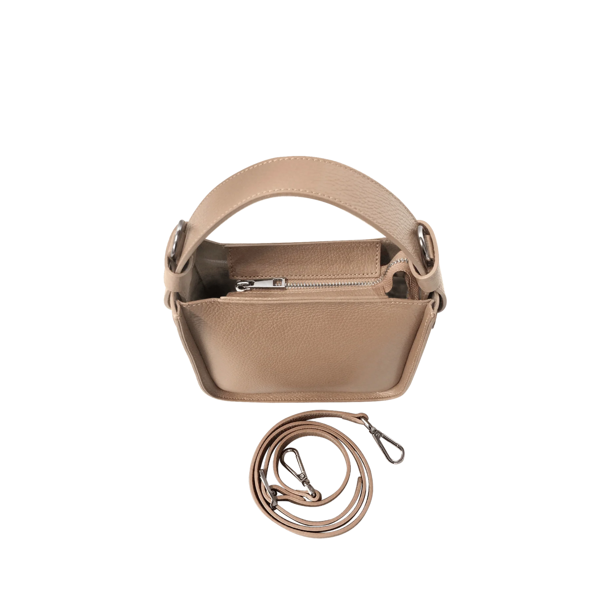 Clean and simple design but at the same time particular and original. Duplo Small is more than a bag, it is perfect, in this small version, for every type of night and also for days that need to be filled with a touch of elegance. Equipped with a single handle it also offers a detachable shoulder strap. Made of genuine embossed leather it is equipped with a zip to ensure closure. Proudly made in Italy.